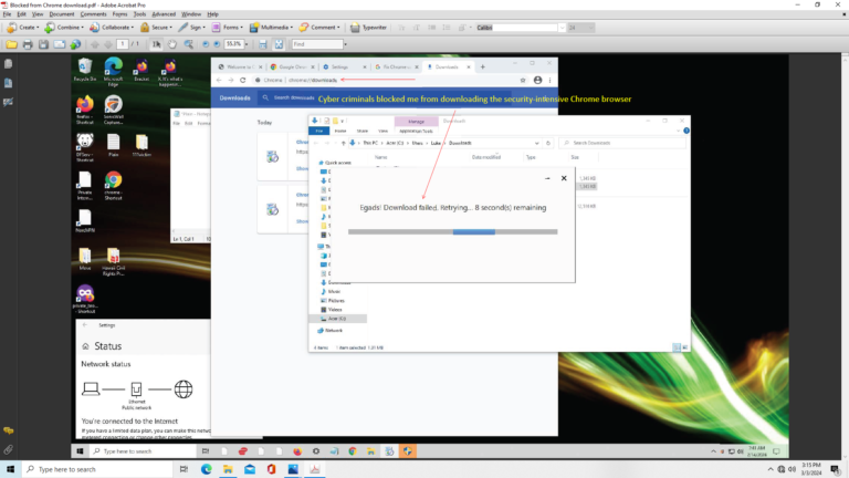 Cyber criminals block my attempts to download the Chrome browser. Please note details in the attached screen shot.