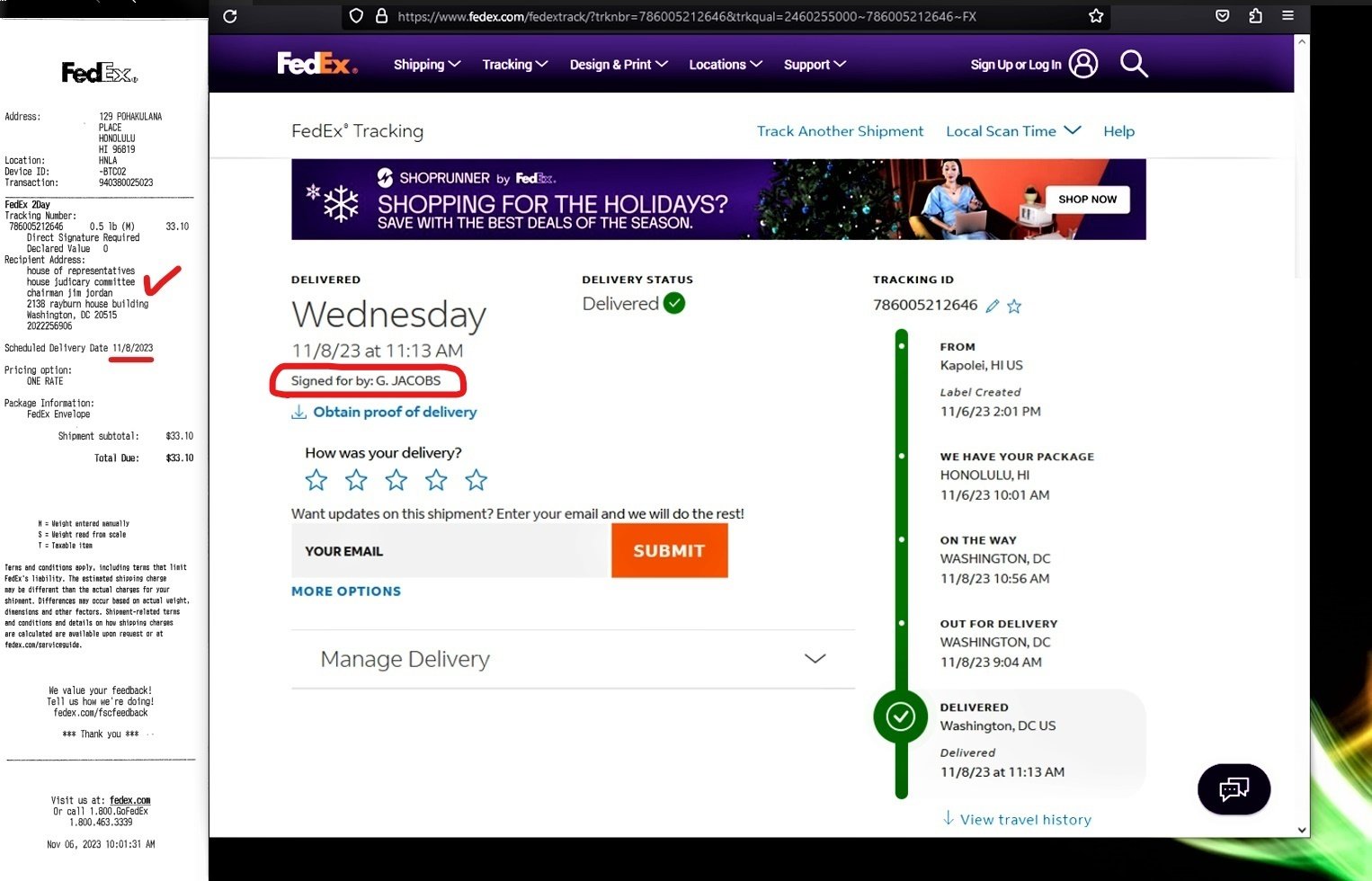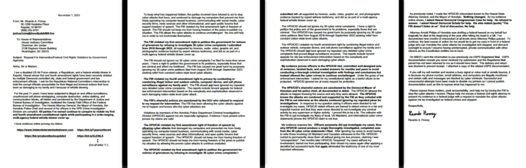 Please note details in the screen shots including the letter I authored to send to Senator Jim Jordan, House Oversight Committee Chairman.